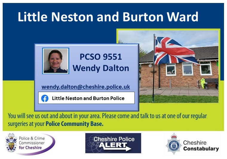 Little Neston and Burton are served by PCs Rob Callan and Dean Snell, and PCSO Wendy Dalton (from January 2024 in place of PCSO Linda Conway) email Mobile 07898 651 828