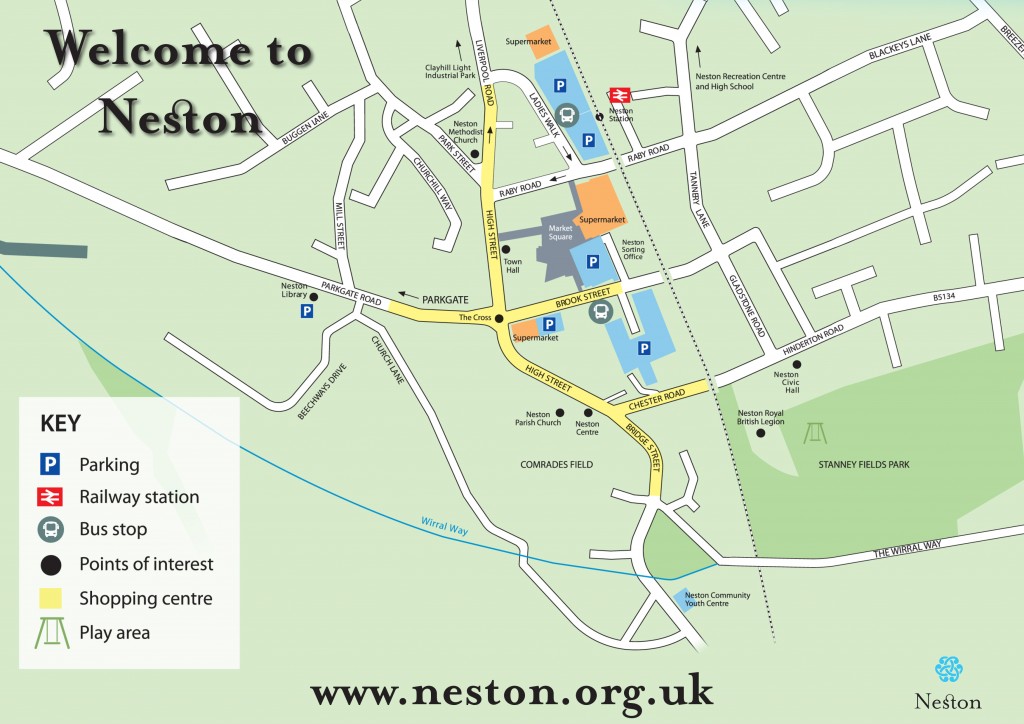 A downloadable version of this map is also available: Street Map of Neston A4 Printable Sheet.