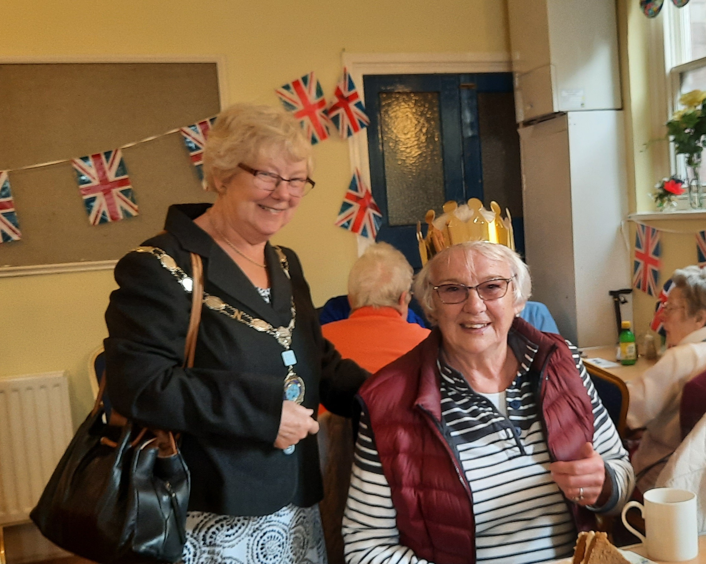 Neston celebrated with a number of events including a Community Lunch at the Welcome Cafe, attended by the Mayor Cllr Pat Kynaston, and the Churchill Court Residents party, both of which were funded by Neston Town Council. (photos courtesy of Cllr Brenda Marple)